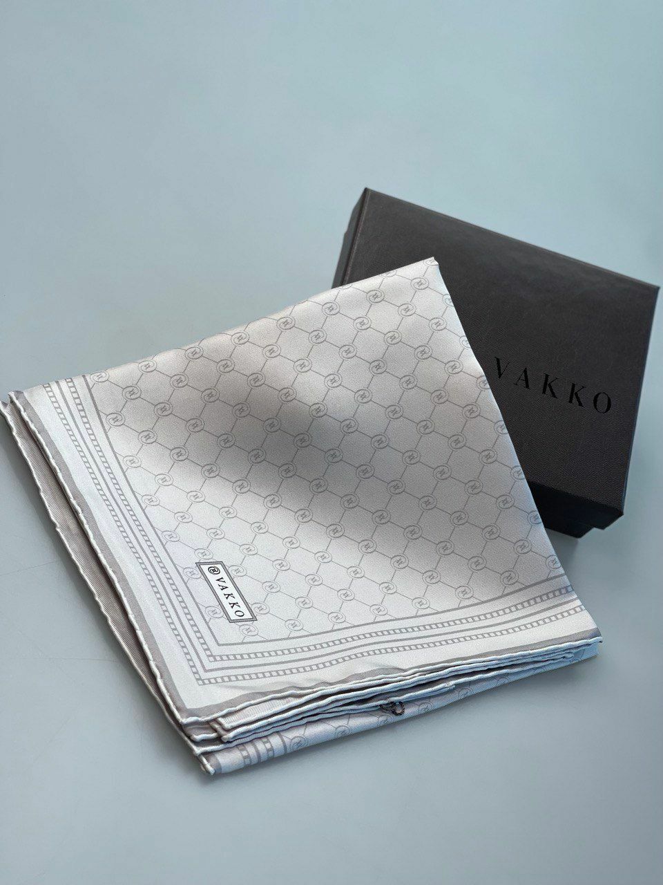 VAKKO MONOGRAM DESEN TWİL İPEK EŞARP GRİ